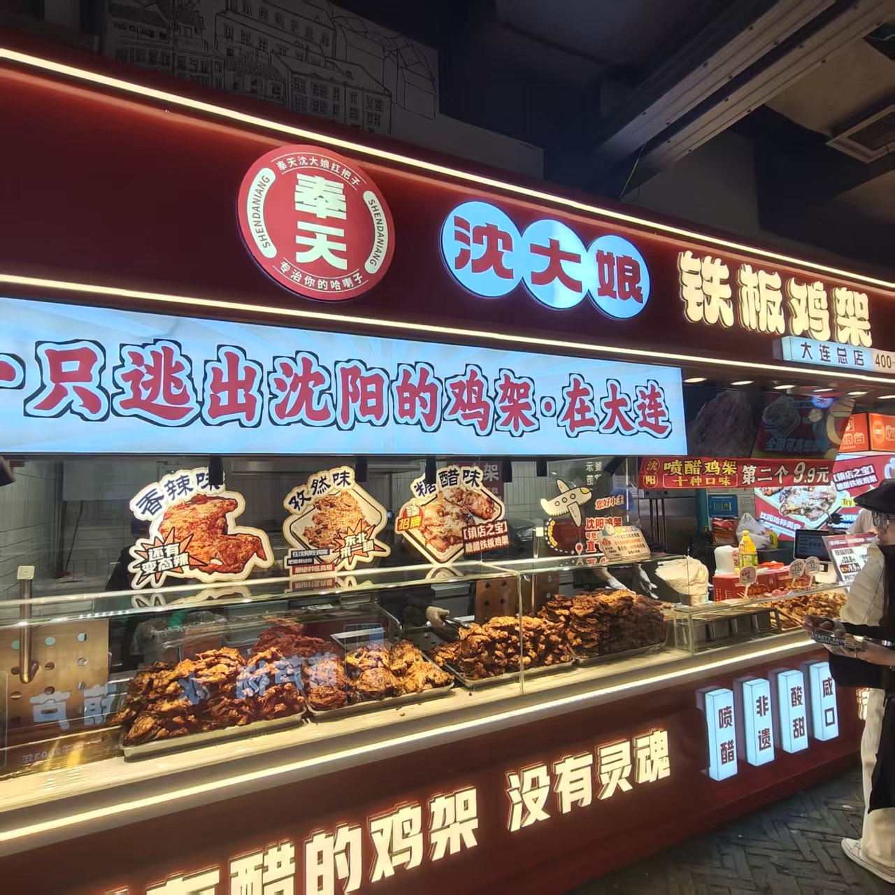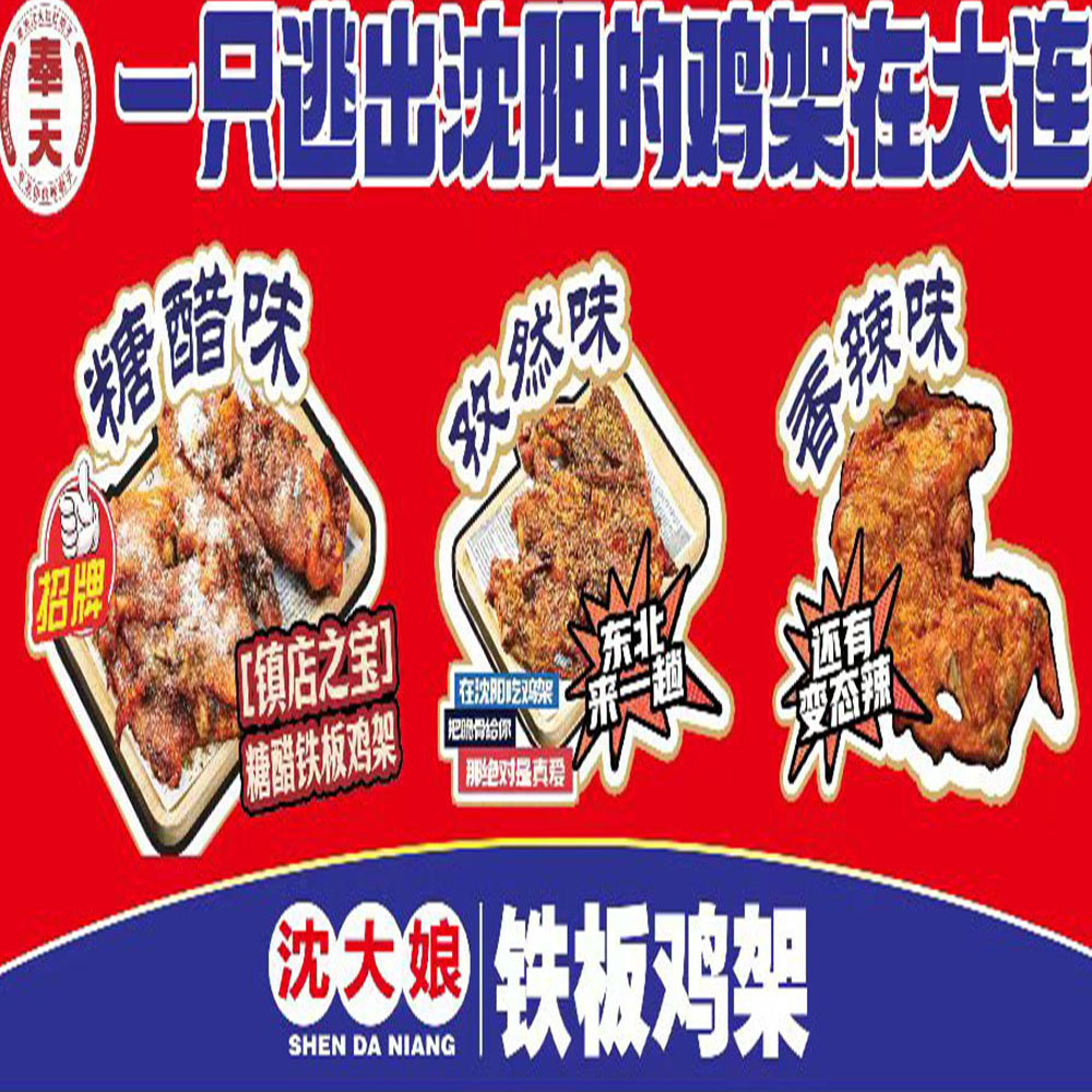 火爆沈阳的沈大娘铁板鸡架来大连了!!沈大娘铁板鸡架因为独 特的腌制手法及多样性的口味,一经面市就获得了广大消费者的肯定与追捧,现今全国门店已超过110家,学员300+。进入大连市场短时间就已经成功经营18家,现面对全大连区域诚招合作伙伴,无门槛、低投入,总部全 面提供货品及技术支持,各位老板可根据自身定位做门店、档口、摊位或小吃车,不给各位老板设限,力争在短时间内火爆大连的大街小巷!!总店位于中 央大道长兴里小吃街,感兴趣欢迎电联及考察考察,愿你我一起打造属于我们的品牌市场!